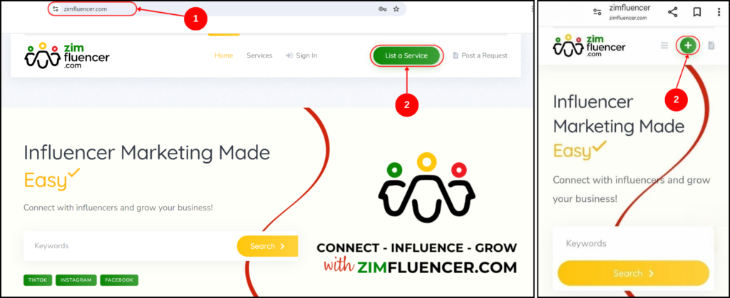 Click ‘List a Service’ or + (plus) sign if using mobile phone.